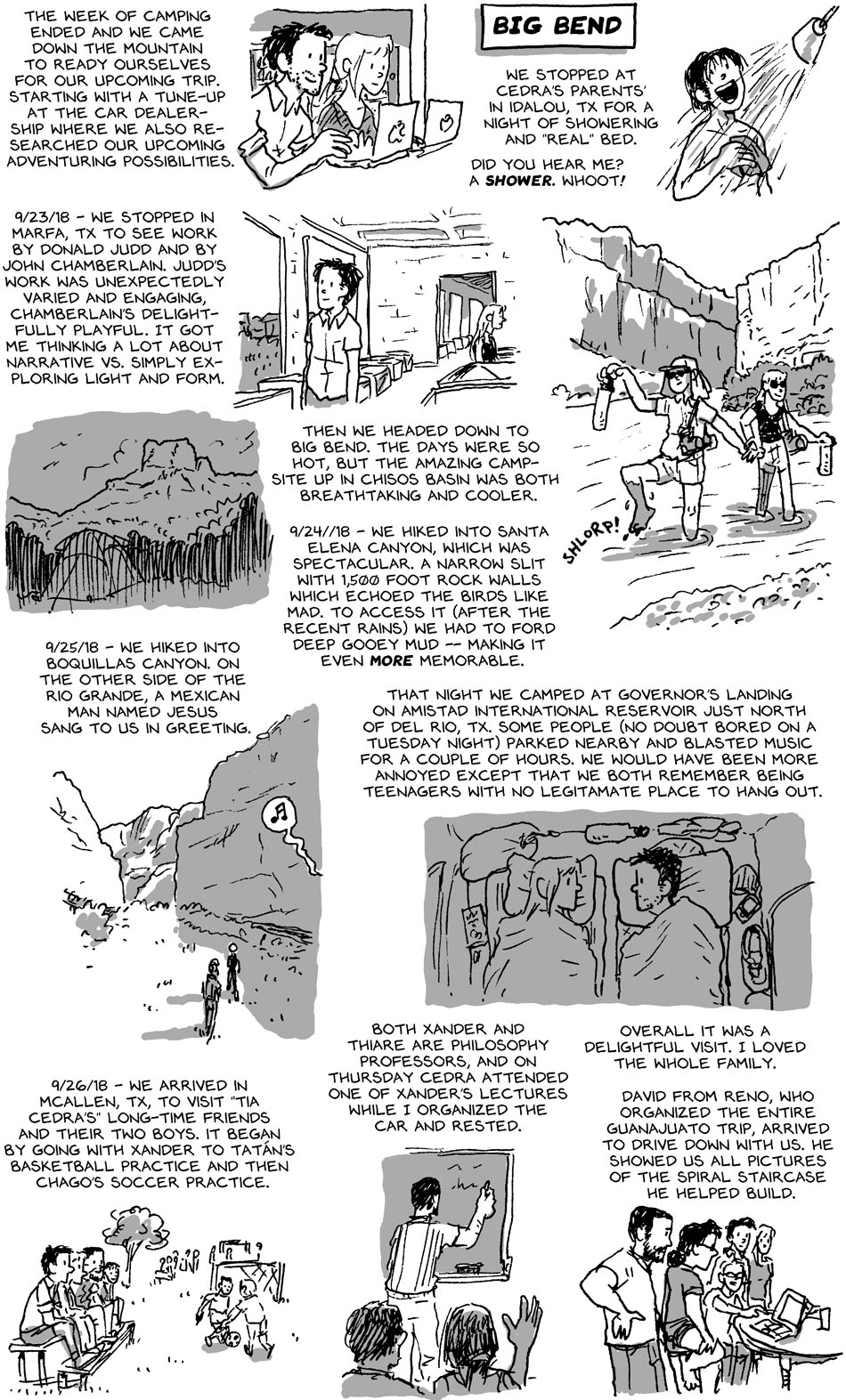 09/28/18 Diary: Big Bend Previous | Next First Strip Original Series (Move to MA) | First Strip Second Series (Some with Cedra) First Strip Third Series (Living on the road with Cedra | First Strip Third Series (St Eustatious/Statia) First Strip Current Series (South America) | Archive | Most Recent Previous | Next First Strip Original Series (Move to MA) | First Strip Second Series (Some with Cedra) First Strip Third Series (Living on the road with Cedra | First Strip Third Series (St Eustatious/Statia) First Strip Current Series (South America) | Archive | Most Recent And so the adventure began! (there will be a double strip Thursday, and then a regular one on Friday) First Strip Original Series | First Strip Second Series | First Strip Third Series | First Strip Current Series | Archive | Most Recent 09/21/18 Diary: Black Canyon Campground 10/05/18 Diary: Guanajuato Leave a Reply Cancel reply Your email address will not be published. Required fields are marked *CommentName* Email* Website Notify me of follow-up comments by email. Notify me of new posts by email.