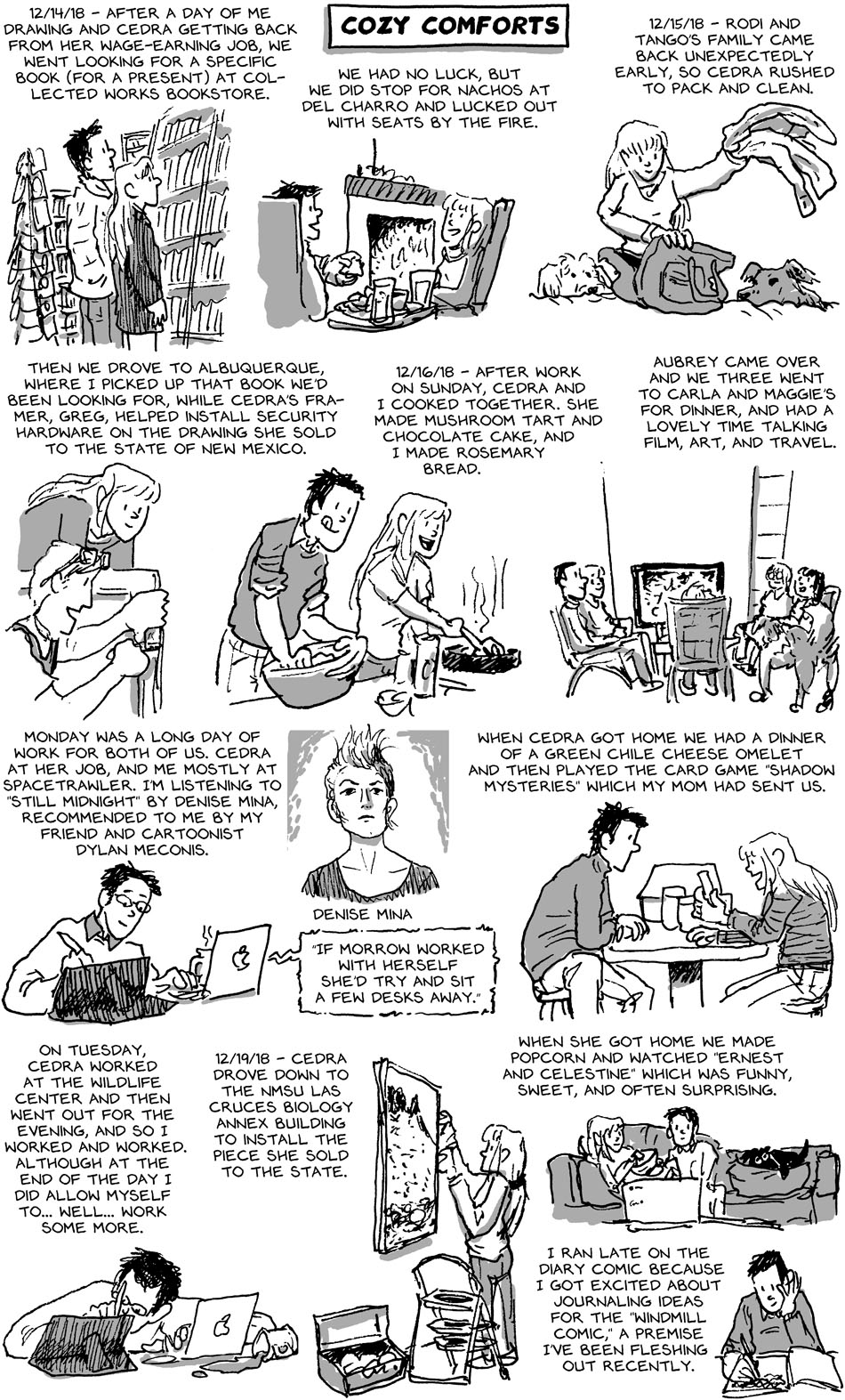 Just wanted to say that I *love* the diary strips. It is one of the highlights of my Friday to vicariously enjoy your nomadic life. It sounds like such an adventure, though I’m sure it also has its moments of worry and doubt. Keep your chin up. And if you’re ever in San Diego, look us up. We’re good for dinner at least and, if our adult kids have left the house (again), our guest room is open to you.