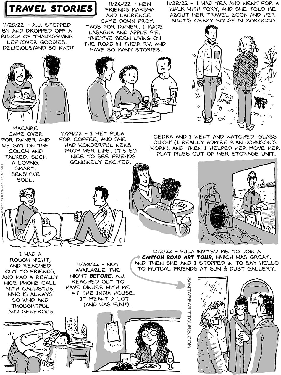 12/02/22 Diary: Travel Stories Previous | Next First Strip Original Series (Move to MA) | First Strip Second Series (Some with Cedra) First Strip Third Series (Living on the road with Cedra | First Strip Third Series (St Eustatious/Statia) First Strip Current Series (South America) | Archive | Most Recent Previous | Next First Strip Original Series (Move to MA) | First Strip Second Series (Some with Cedra) First Strip Third Series (Living on the road with Cedra | First Strip Third Series (St Eustatious/Statia) First Strip Current Series (South America) | Archive | Most Recent 11/26/22 Diary: Thanksgiving 12/11/22 Diary: Making Food Leave a Reply Cancel reply Your email address will not be published. Required fields are marked *CommentName* Email* Website Notify me of follow-up comments by email. Notify me of new posts by email.