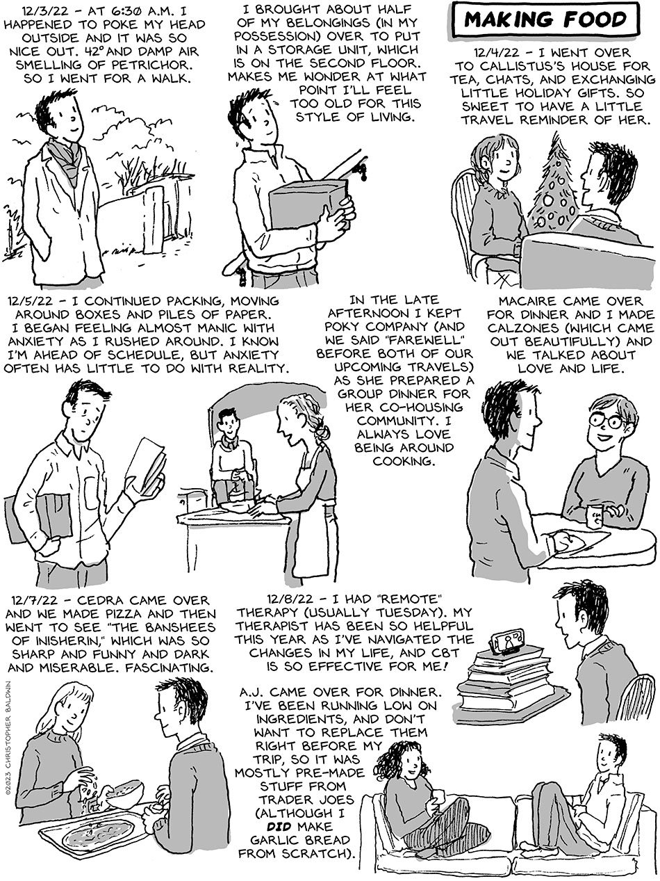 12/11/22 Diary: Making Food Previous | Next First Strip Original Series (Move to MA) | First Strip Second Series (Some with Cedra) First Strip Third Series (Living on the road with Cedra | First Strip Third Series (St Eustatious/Statia) First Strip Current Series (South America) | Archive | Most Recent Previous | Next First Strip Original Series (Move to MA) | First Strip Second Series (Some with Cedra) First Strip Third Series (Living on the road with Cedra | First Strip Third Series (St Eustatious/Statia) First Strip Current Series (South America) | Archive | Most Recent 12/02/22 Diary: Travel Stories 12/16/22 Diary: Wrapping Up Leave a Reply Cancel reply Your email address will not be published. Required fields are marked *CommentName* Email* Website Notify me of follow-up comments by email. Notify me of new posts by email.