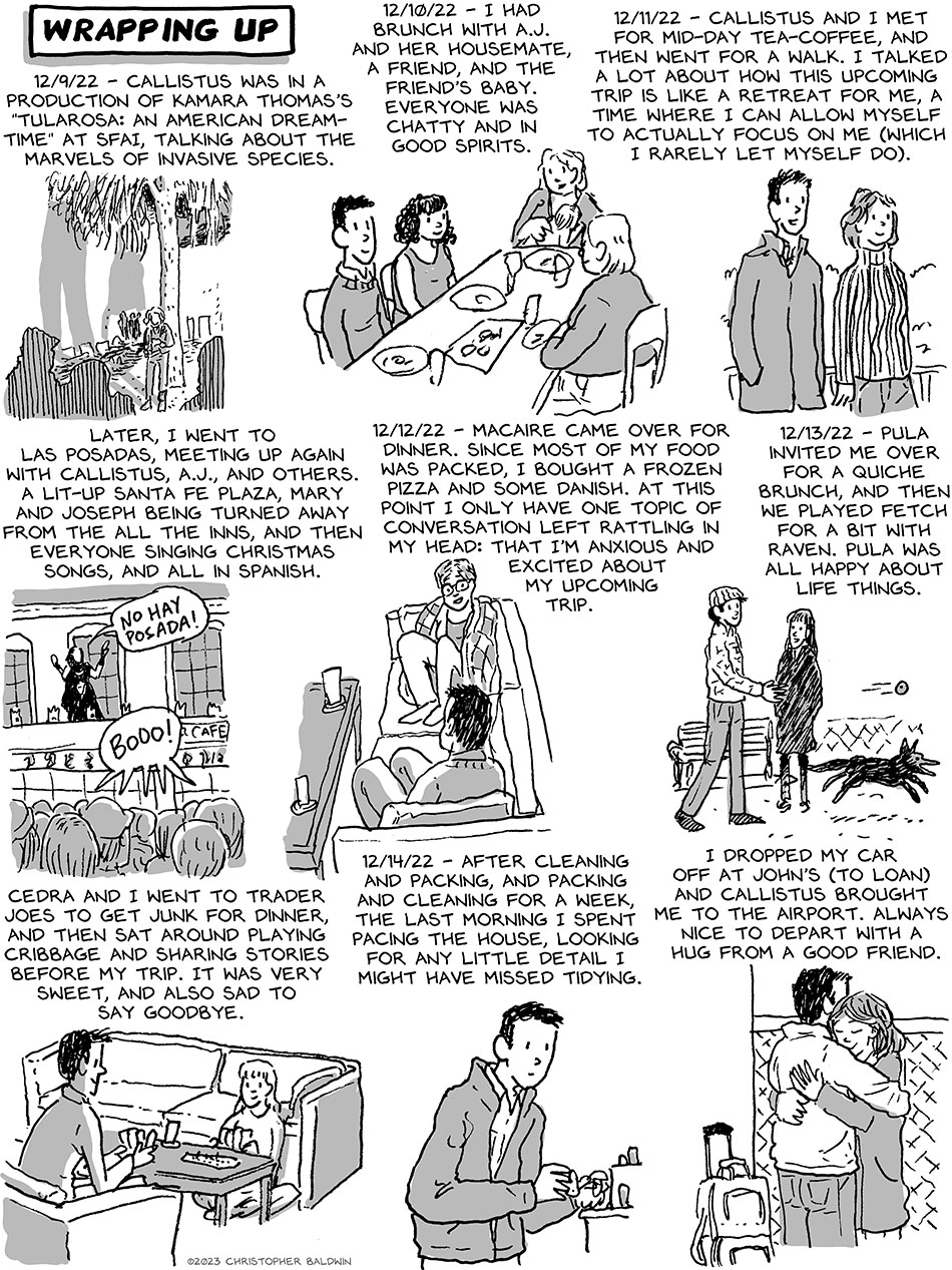 12/16/22 Diary: Wrapping Up Previous | Next First Strip Original Series (Move to MA) | First Strip Second Series (Some with Cedra) First Strip Third Series (Living on the road with Cedra | First Strip Third Series (St Eustatious/Statia) First Strip Current Series (South America) | Archive | Most Recent Previous | Next First Strip Original Series (Move to MA) | First Strip Second Series (Some with Cedra) First Strip Third Series (Living on the road with Cedra | First Strip Third Series (St Eustatious/Statia) First Strip Current Series (South America) | Archive | Most Recent 12/11/22 Diary: Making Food 12/19/22 Diary: Taking Flight Leave a Reply Cancel reply Your email address will not be published. Required fields are marked *CommentName* Email* Website Notify me of follow-up comments by email. Notify me of new posts by email.