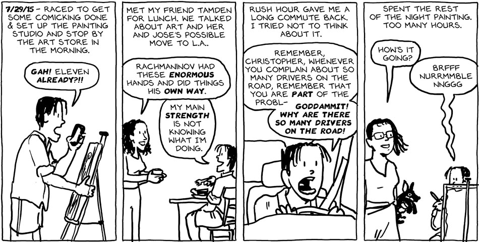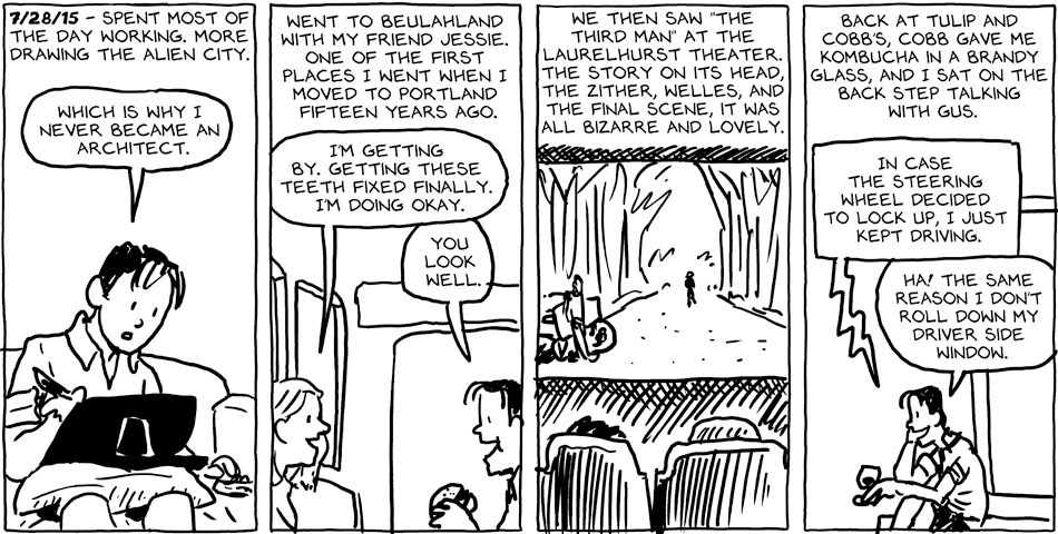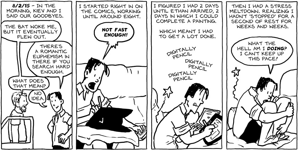 I have restarted my diary strip, the first version which ran in May of 2008. It will run pretty much daily, Monday-Friday. But I will likely do it 7 days/week. So, I’ll either get a big backlog, or create buffers for days when I miss it. We’ll see how it pans out. It’s more a side project I’m doing because I really enjoy it than anything else, so I’m not putting any pressure on myself to be faithful, but I probably will be anyways.