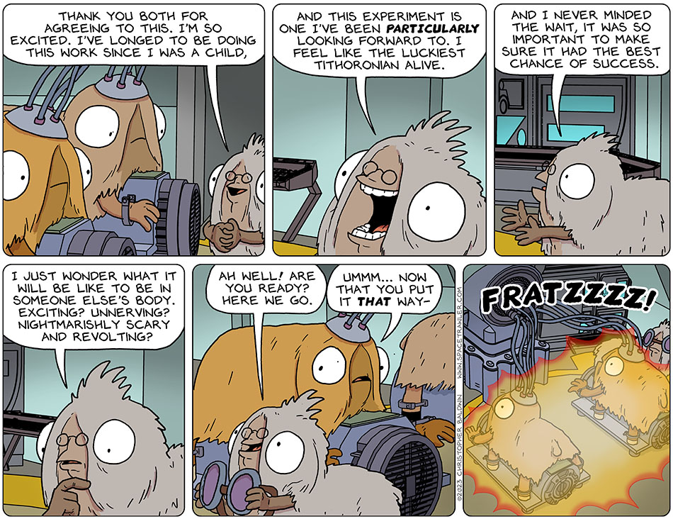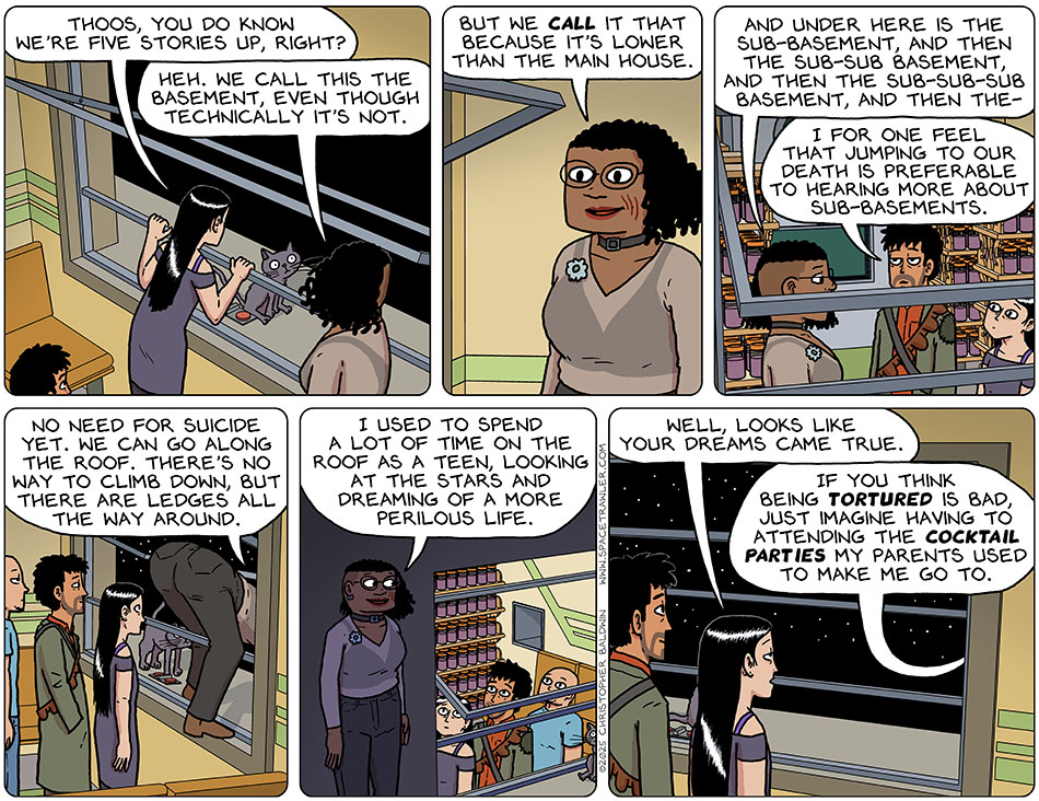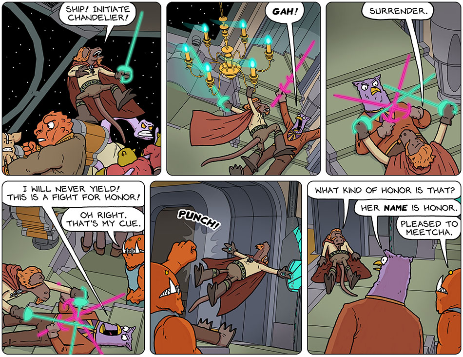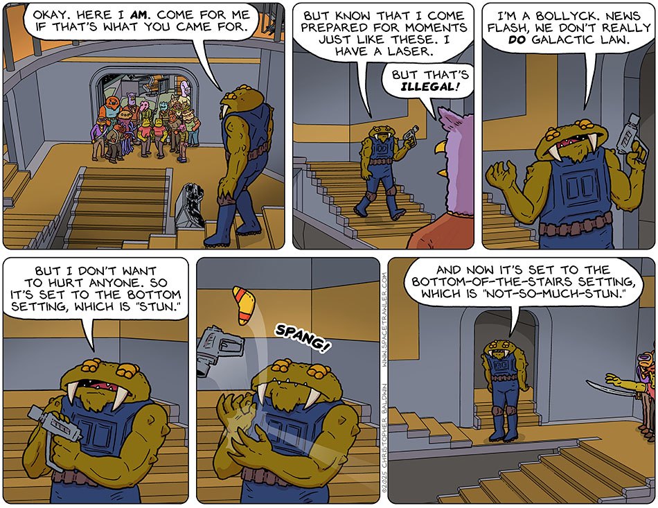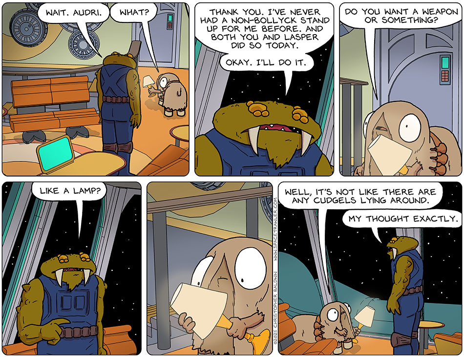 Yakky said to Lasper, “Yeah. Bad guess. But at least you weren’t simpleminded enough to tell her to keep quiet about it until you did tell us.” Yakky and Kniff looked at Lasper as they realized he was very loudly not responding to that, and then went back to work, miffed at how foolish he behaved.