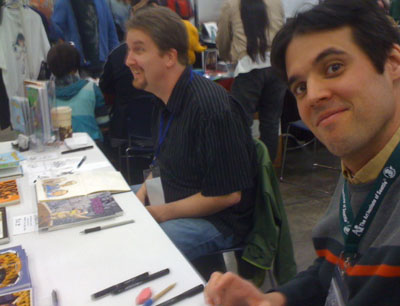 So far, I’m having a great time at Stumptown (and always do), sitting with my goofy lovable friend Kevin. πŸ™‚