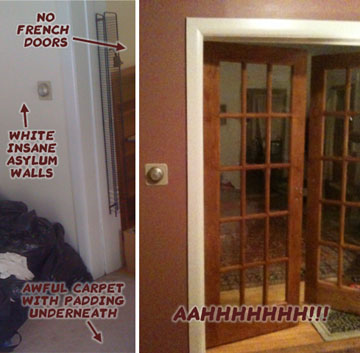 Ooooh, it’s been a crazy week. Unpacking. In the bedroom I ripped up the carpet, painted the walls, stained and hung french doors. Mom and sister came to stay, then some friends came to stay. Wish I had the energy to stay up another hour and a half to watch the Mars landing. Sigh.