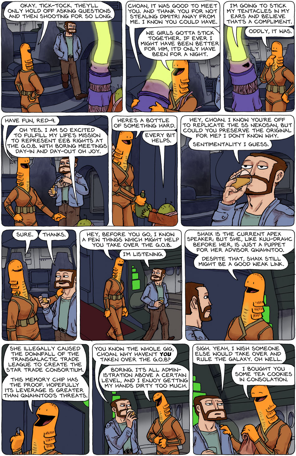 I think even I could be bored about taking over the G.O.B if I had the Lamborghini-equivalent of a spaceship, bank account full of money, sexy females of different alien species lying in my bed and friends who you could die for. Why bother with power if you can get anything already?