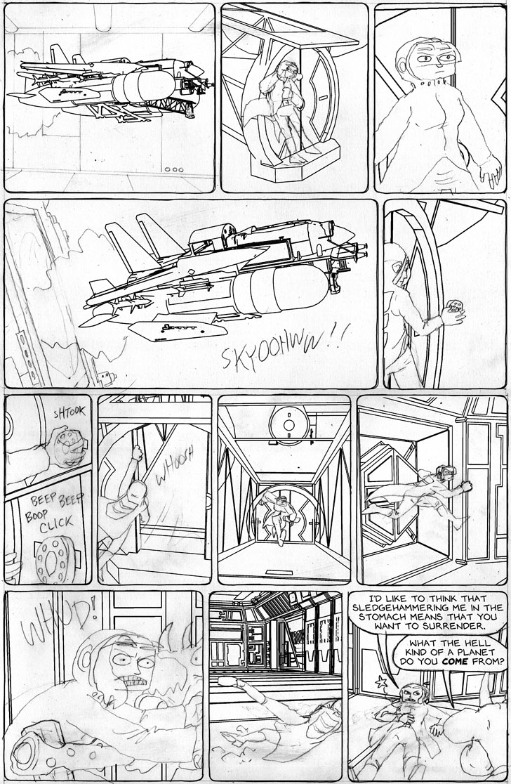 So in panel #9 Emily uses the weakened gravity and ship’s acceleration to fly while running. Damn, I wanna do that.