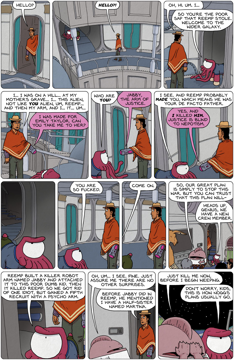 10/31/16 Mauricio Introduced Previous | Next 1st Series | 2nd Series | 3rd Series | First Strip Current Series | Archive | Most Recent Previous | Next 1st Series | 2nd Series | 3rd Series | First Strip Current Series | Archive | Most Recent Happy Halloween! First Strip First Series | First Strip Second Series | First Strip Current Series| Archive | Most Recent 10/26/16 Jabby 11/02/16 Mauricio Welcomed In 5 Comments Coyoty October 31, 2016 at 2:47 am 9 years ago Oh, and Mauricio… Your half-brother-in-law is a giant grub. Thought you’d like to know. While we’re exchanging surprises. DrunkenNordmann October 31, 2016 at 6:43 am 9 years ago Was. :/ Nessus October 31, 2016 at 7:16 am 9 years ago [Benjamin King] That’s not a plan: that’s a goal! [/Benjamin King] andreas October 31, 2016 at 7:25 pm 9 years ago (channeling coyote) Jabby was Taylor-made for Emily? Frank October 31, 2018 at 1:50 am 7 years ago Jabby would love Oediups Rex And Nogg, poor choice of words for who you’re addressing Leave a Reply to Frank Cancel reply Your email address will not be published. Required fields are marked *CommentName* Email* Website Notify me of follow-up comments by email. Notify me of new posts by email.