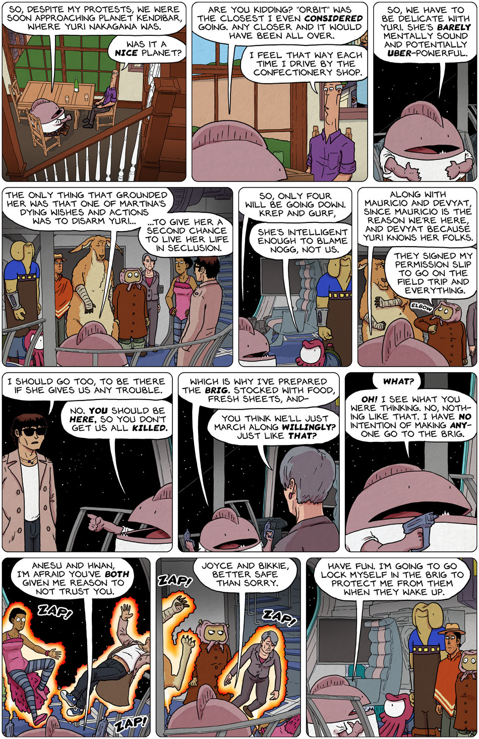 With every new Spacetrawler chapter, Nogg will spend more and more time locking himself in the brig to avoid recriminations from surviving crew members shanghaied in previous chapters.