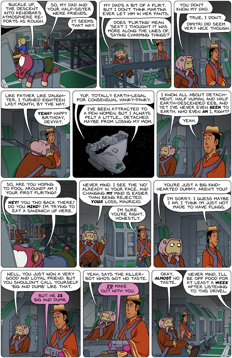 Driving driving. I had thought we’d be staying a while in NE Texas, but instead unexpectedly suddenly heading to Colorado. But, every free minute here and there i worked on the strips for this week. And holy crow, I wouldn’t have guessed it, but I managed to get them done. Probably the saving grace was that I happened to have written them last week while I still had full sanity. On the road all day tomorrow, which is why I’m writing this blog at 1:57pm on Tuesday morning. Whee!