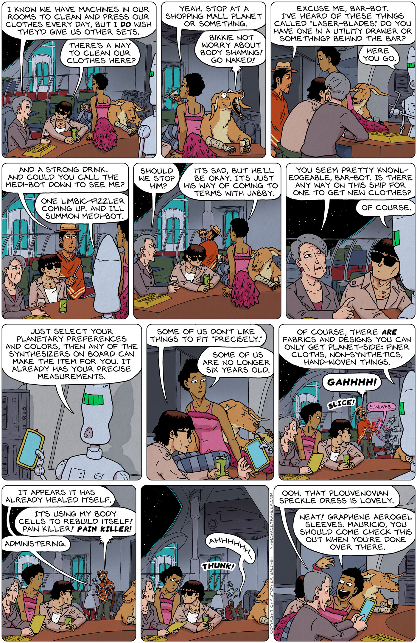 Self-optimizing arm cannons made of nanoscopic goop? Yeah, that’s fine. FTL drives that slip between particles of light, and other FTL drives that go faster because light is 97% darkness? Not a problem.