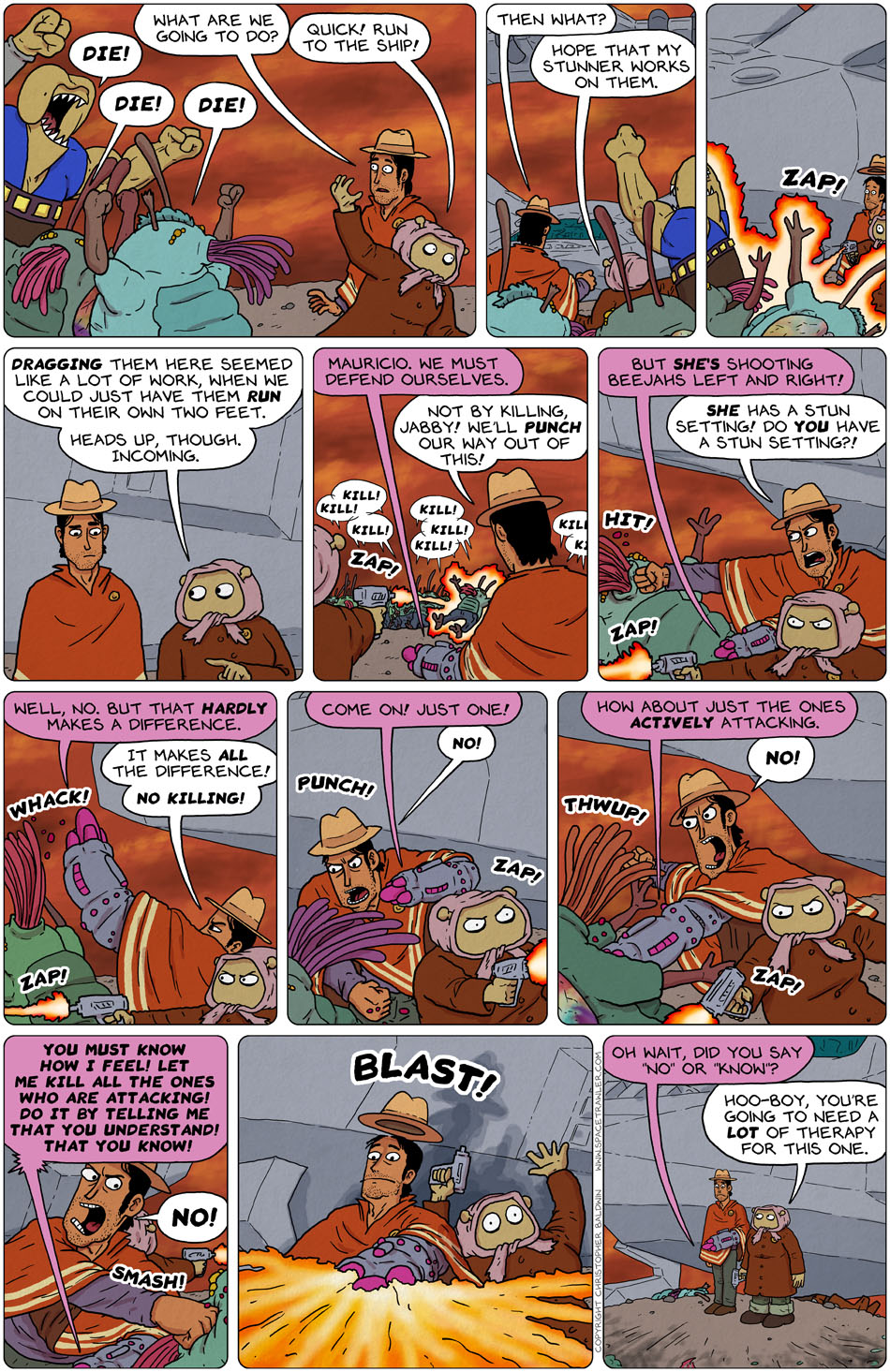 “Hey Emily, you know that superweapon you turned down? It’s taken over Martina’s little brother. He’s basically dead now, Jabby’s driving the carcass.”
