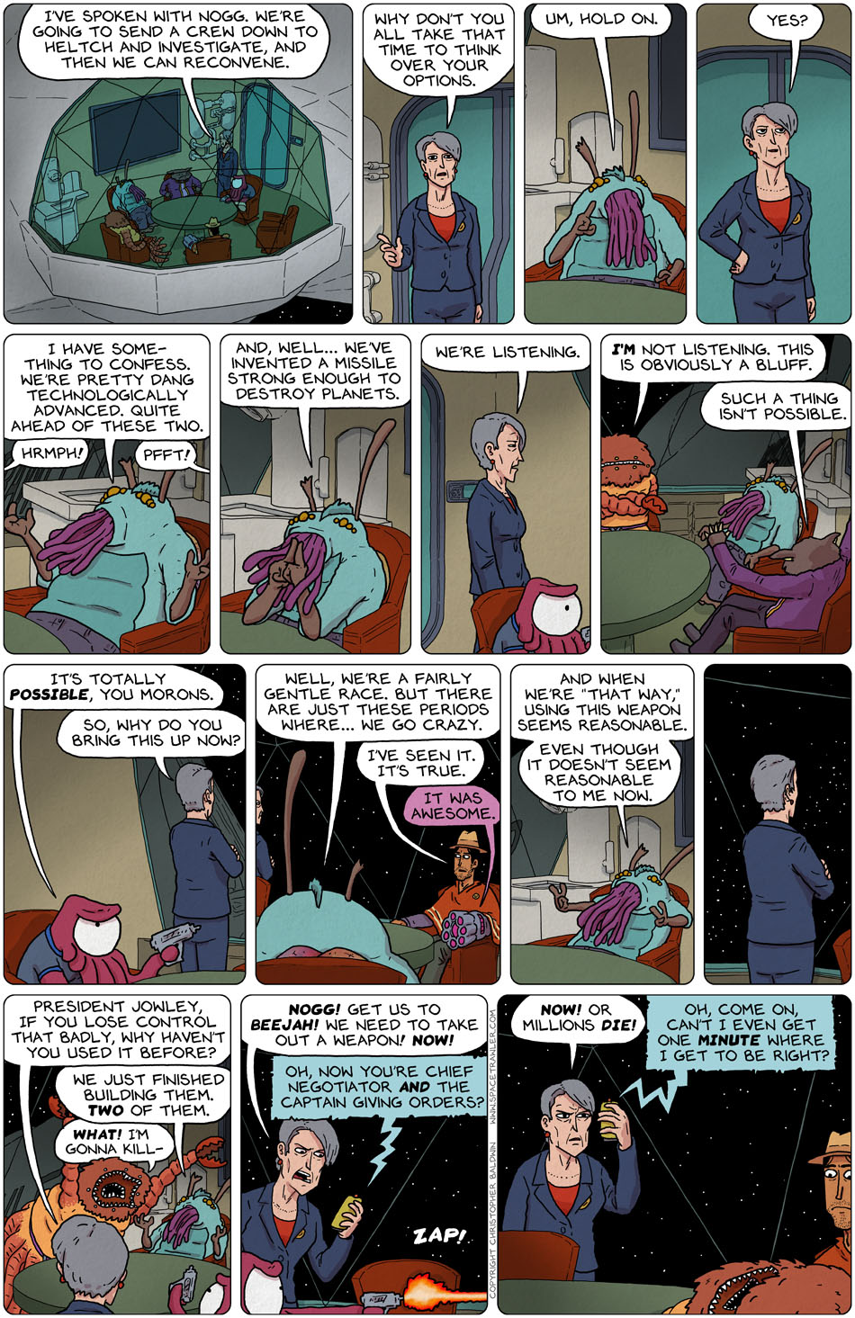 3. Love the last 2 panels!!! In my mind’s eye, the sequence happened almost instantaneous – Krep nicely blasts Avnerix and then the shocked look on Mauricio’s face.
