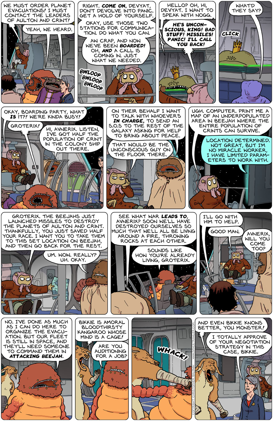 You know, as much as it seems like the team kinda screwed up this whole situation, it’s still probably better than if they had done nothing. The Beejahs were already going to use those missiles at the first bad mood opportunity anyway, and nobody else knew about them. If the Spacetrawler hadn’t been there, there probably wouldn’t have been anyone else in a position to even try to stop it.