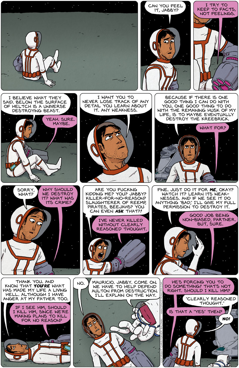 1. I don’t even know what to say. Trying to word it but it’ll likely sound lame.This strip has unexpectedly touched me. So much conflicting thoughts between Mauricio and Jabby. Even if both were to try their hardest, they can’t possibly fathom the mind-set of each other. Probably something I can’t fathom about myself too.