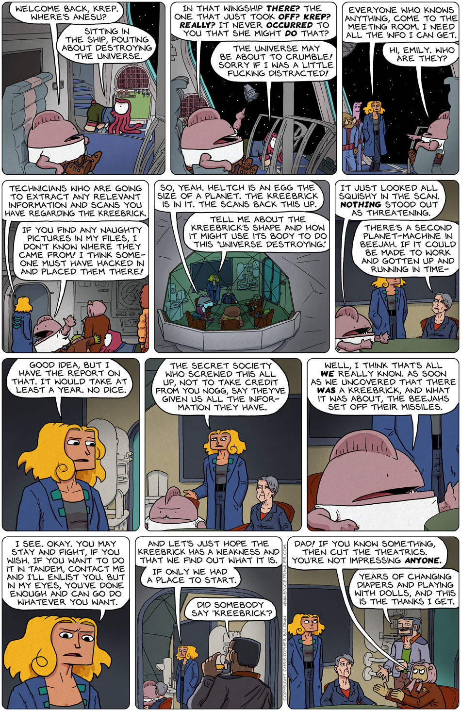 Chris, you deserve a ton of credit for keeping this comic going with so many side projects and travel. Most other web comic artists, whenever they have a side project, abandon their strip for from a couple months to a couple years, or else promise they’ll be back and just disappear into commercial ventures. (Yenny, Girls of Monster Paradise, The Amazing Charles Christopher, Sheldon/Drive – although Dave Kellett did come back, sort of)