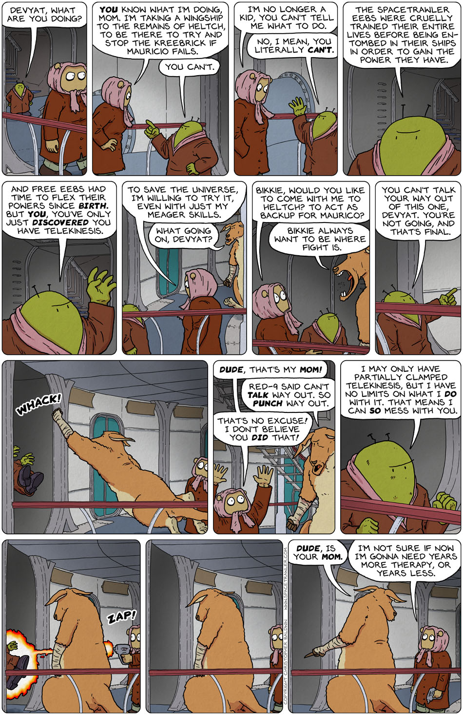 @Christopher, you manage to make me laugh on almost every page, and that’s quite a feat. I’m looking forward to the print version so I can add it to my Spacetrawler collection and re-read it from the beginning 😀