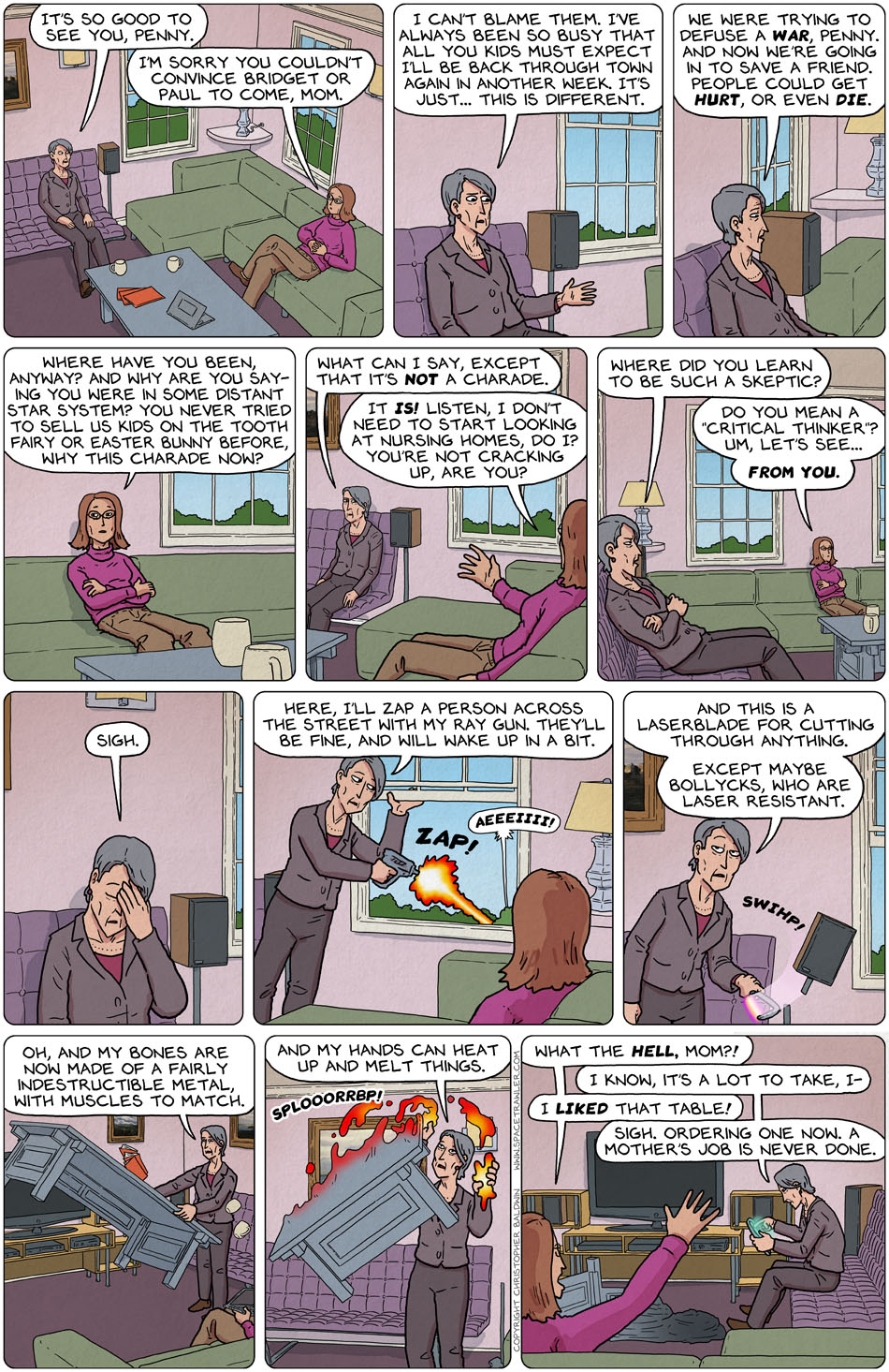 Well. Plainly the apple didn’t fall far from the tree. Penny is logical enough to accept extraordinary proof for extraordinary claims. I blanch to think what would happen to the G.O.B. if Penny and her sibs encountered it. The Galaxy would not be the same.