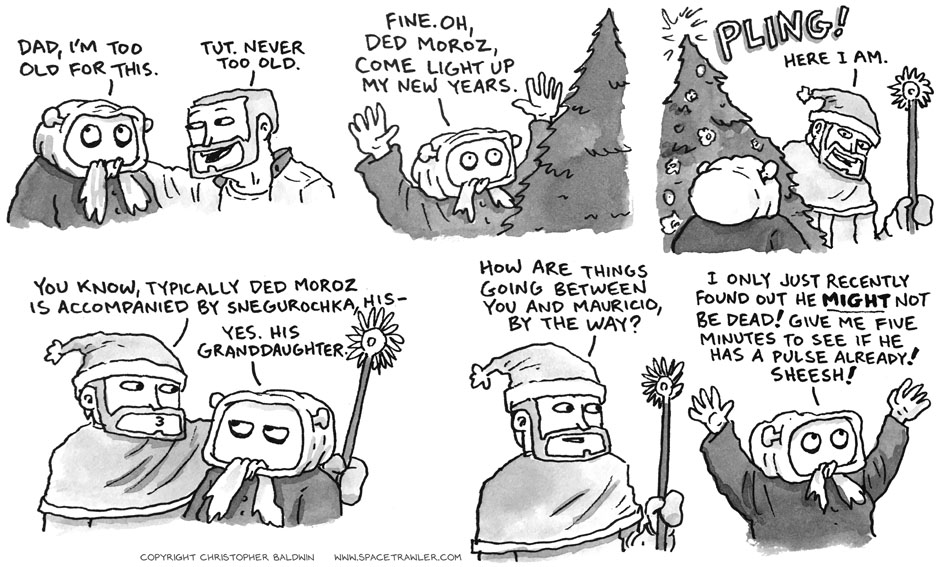 1. You always add interesting tidbits for us in your stories, Chris! At first, I wondered if Ded Moroz was a play on dead Mauricio (Maurice) but when I came to the Russian “Snegurochka”, I figured there was more to it. I was about to Google “Ded Moroz” but you already kindly provided a link.