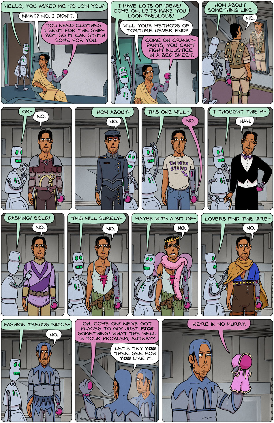 The webcomic After-Y2K had a few digital paper dolls with outfit pieces one could drag into position. Nitrozac and Snaggy let that die with a whimper in 2003 but still do The Joy of Tech.