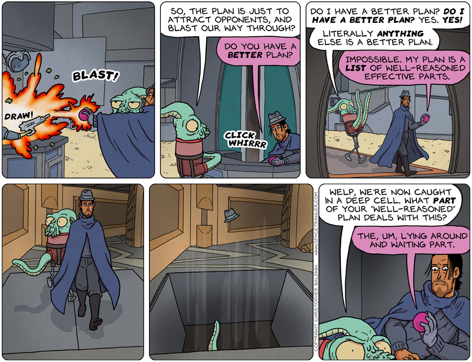 It’s hard to have adventure-humor without a trap-door. It’s like PB&J without burnt coffee and fake creamer. There’s just something not right about it.