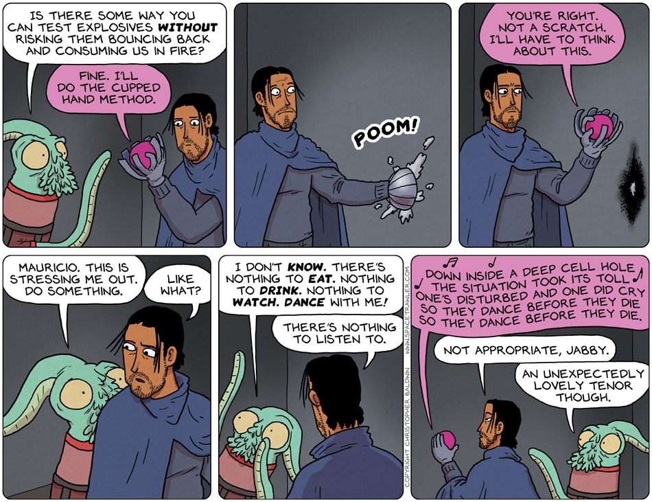 Wonder how Jabby learned to sing? If he controls Mauricio’s mind to the extent I think he does, then likely Mauricio used to sing. Maybe he should start again (though not in that situation). For me, singing works like a tranquilizer and an upper at the same time. Simply put, I can’t imagine life without singing.