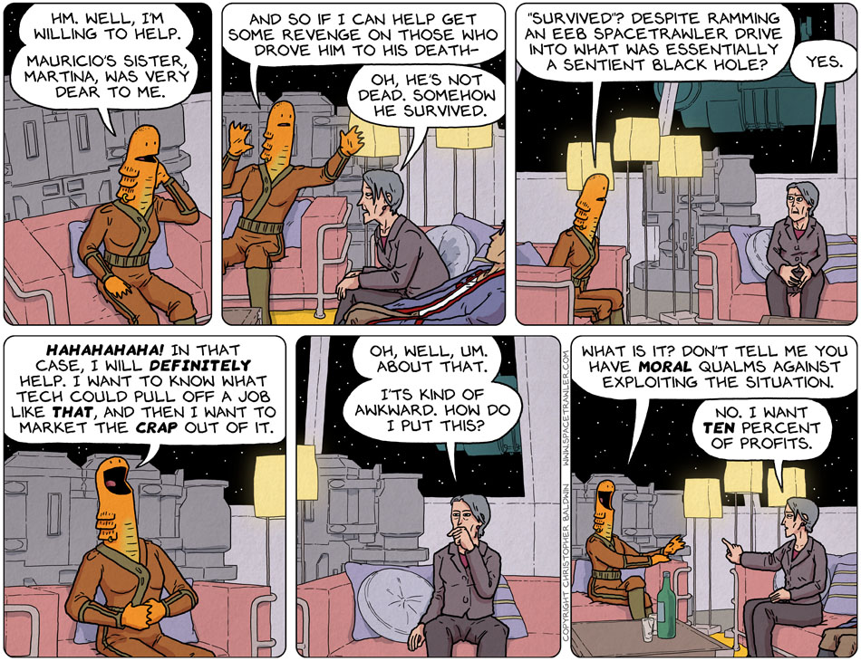 If I do not mean for it to do something, it won’t do it. Anything I would not act on, it would not act on. I might consider killing someone, but we wouldn’t do it. A Jabby wouldn’t be designed into it. ChoanEvans Biotechnics wouldn’t want to be sued.