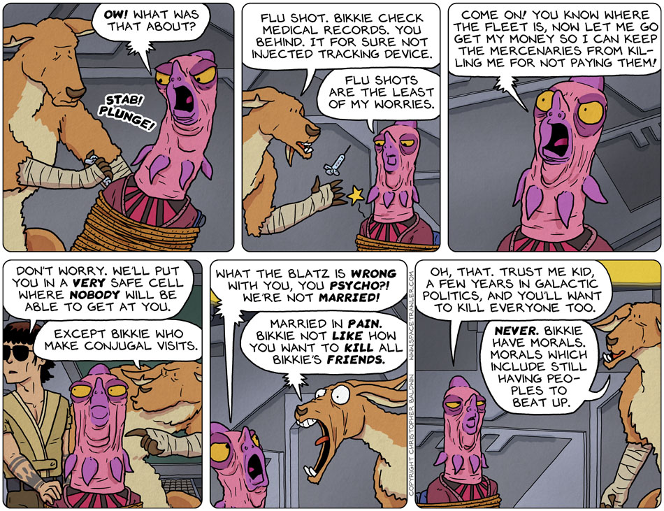 I believe it is a flu shot. Any other character and I wouldn’t, but I don’t think Bikkie is capable of such duplicity.
