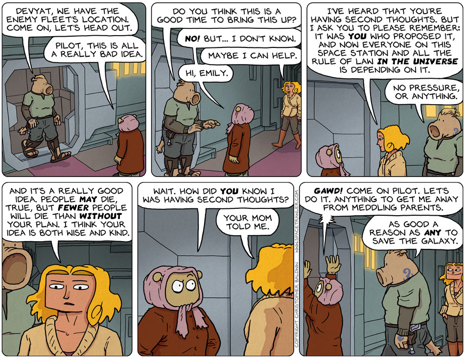 Normally it would be quite the big deal to be able to tell one’s parents “I went in, saved the GOB, etc.”. They would be suitably impressed and certainly not respond with “Da, saving galaxy, yadda yadda, always such a drag. Let me tell you story.”