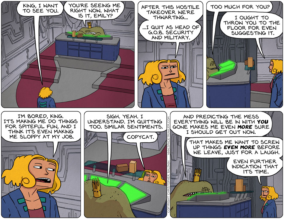 @Tim, good idea, and I’ve done that for other projects, but with Spacetrawler I like that the background isn’t abstracted, so that the reader feels more immersed in the world rather than at their desk simply reading about the world. And so it’s a route I chose (long ago) not to take with this project — despite my own sanity. π