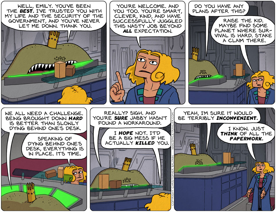 Wait – Jabby has already been set up by Emily and “shot” King and King has already resigned, becoming O’Kingly. Why does this look like we have stepped back a bit in time?