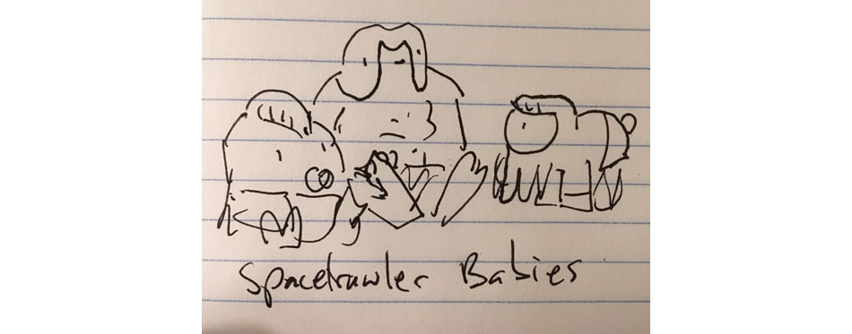 Ha! Aw, thank you. But, no. I was barely buzzed from one drink. Just silly enough to actually draw it, and just silly enough to do nothing else. But that’s what my quick paper sketches tend to look like.