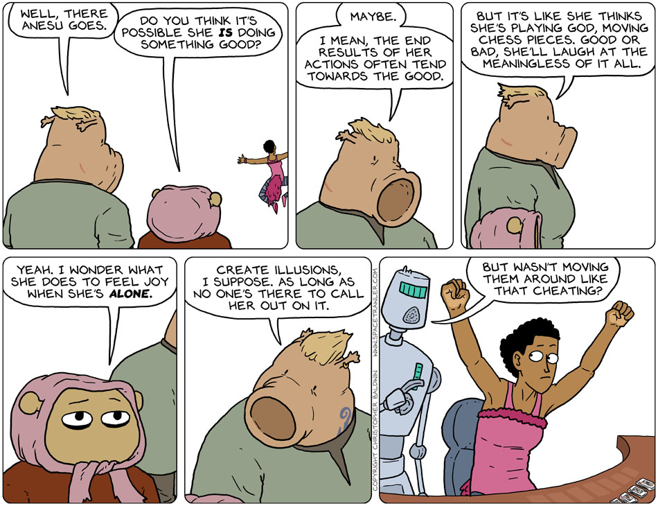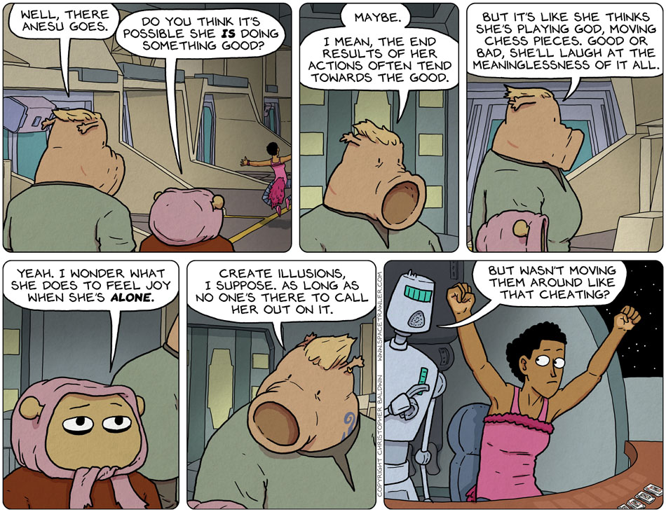 I think there is a small mistake in the speech bubble of the 3rd panel – Shouldn’t it be “meaninglessNESS”?