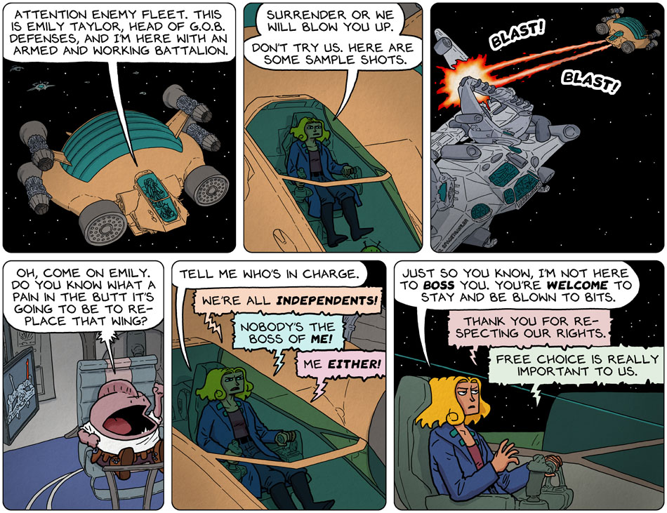 We now see why Emily included them in the van of the fleet. Nothing like a compliant if somewhat slow captain and ship to serve as an example of bad things to come. Very wise of her.