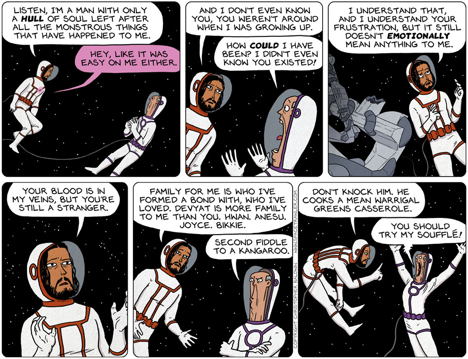 One of the defining if contradictory rules of ‘family’ is that they, and you, don’t have a choice being that way. Warpig’s example only reinforces this rule. It’s what we do with family — or how we flee from them — that matters. If it matters at all.