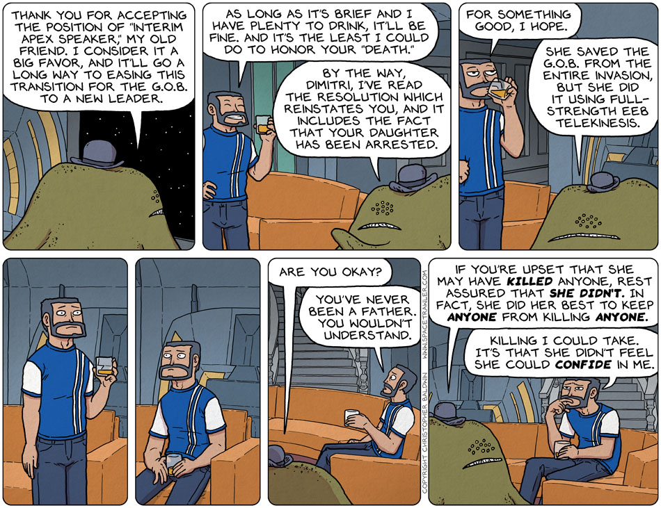 It’s subtle, but you did a really good job with conveying the changes in his body language and face, Chris.