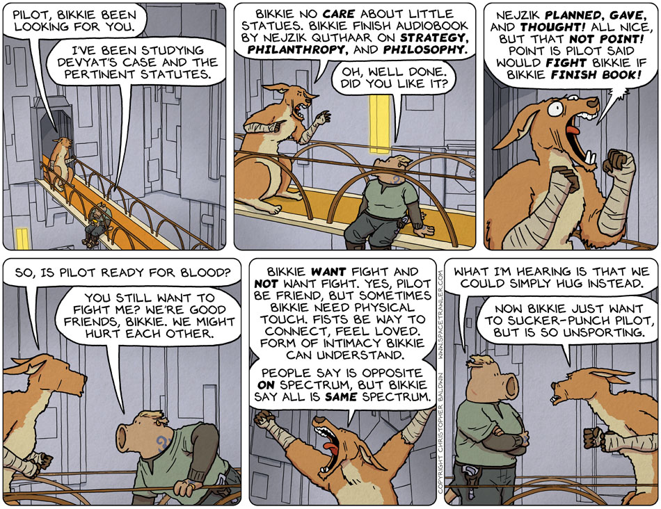 The translator device is doing the best it can with a kangaroo brain. This isn’t even a kangaroo that’s been made smarter by raiding the garbage cans at Unseen University.