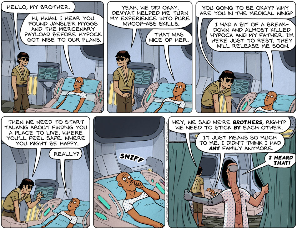 Also: love the design of the medbay: it looks real. So many scifi tales have the medbay looking like someone dropped an alchemist’s labin a surgical theater and mixed it up with a scrapyard for second-hand prostetcis.