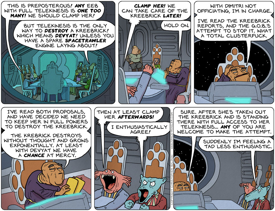 Also, when the Eebs were freed didn’t the GOP pass a law saying all telekinetic Eebs had to be clamped? I don’t have time to search the archives, but I feel like that was a thing.