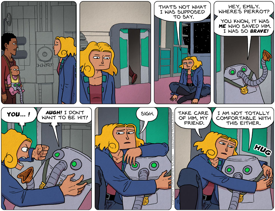 It’s hard to accept that a potty-bot was of more help to Pierrot than she was. Something she’ll have to ponder by herself a long while, figuring out what to do next.