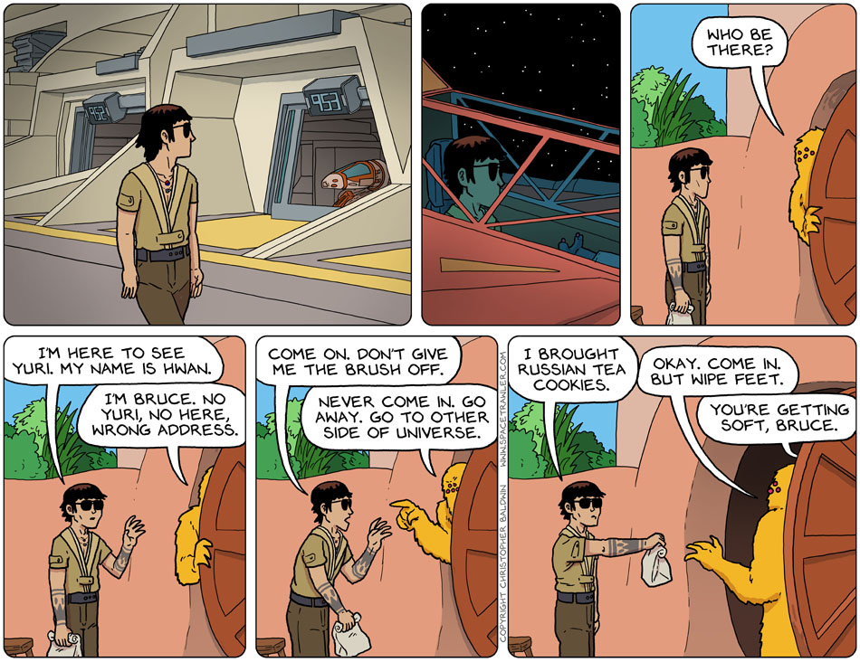 I’ve thought that Hwan and Yuri had some commonality from the time Hwan admitted all his martial-arts studying had come to naught. Modern Galactic tech and culture gave them some respite. But Yuri’s peace is self-enforced, where Hwan still seems to be reaching for purpose, still undefined. That may be what led him to seek out Yuri. But I digress.