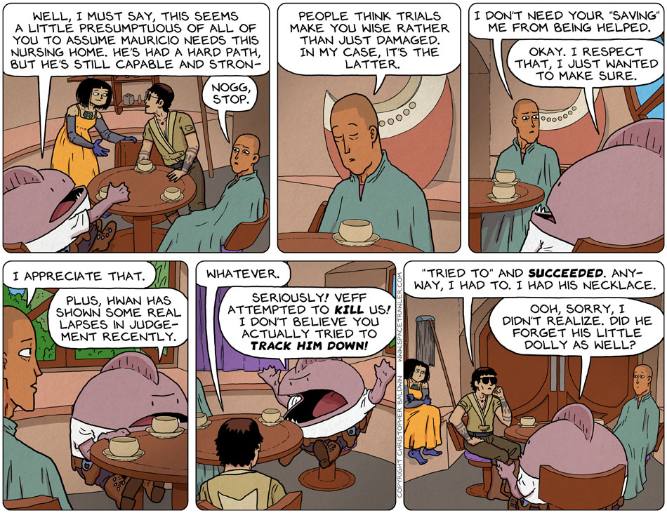 Most fascinating Spacetrawler 2 comic in a long time, in terms of the shades of characters and character interactions displayed amongst the five characters present. Or did people forget the mop, and its relationship to Yuri?