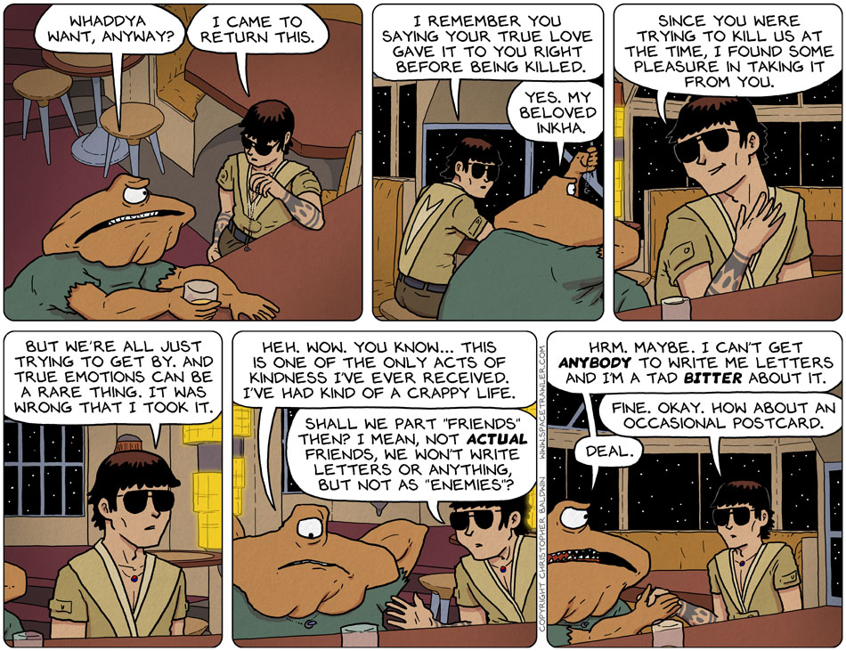 I’m not so sure she *was* a lovely person, Christopher, if she found Veff love worthy. Maybe nice but not lovely. And if what Hwan did was “one of the only acts of kindness” that Veff experienced (and that would include Inkha’s acts), but she wasn’t even nice.