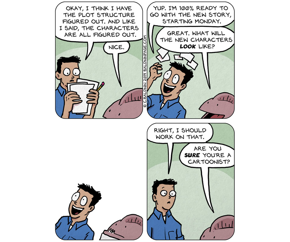 1. Often, when I was making a comic, since the writer lived 2 time zones away and really didn’t understand that not everybody is Sergio Aragones, I would get the next script on the Tuesday before the comic was released on Sunday. More often than I care to count, these were the ones that had new characters that I had to design and draw up, rarely knowing if this one was going to show up later, disappear entirely of suddenly become a pivotal character.