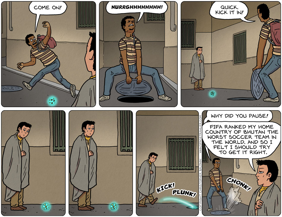 Sometimes when one is tired, even kicking a bomb down a manhole can be a challenge.