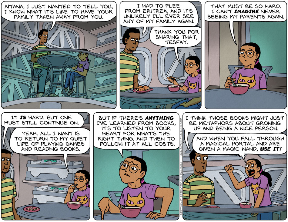 Aitana, you are in a Spacetrawler comic; going back to books and games, a nice quiet life, is ~gone, honey chile!