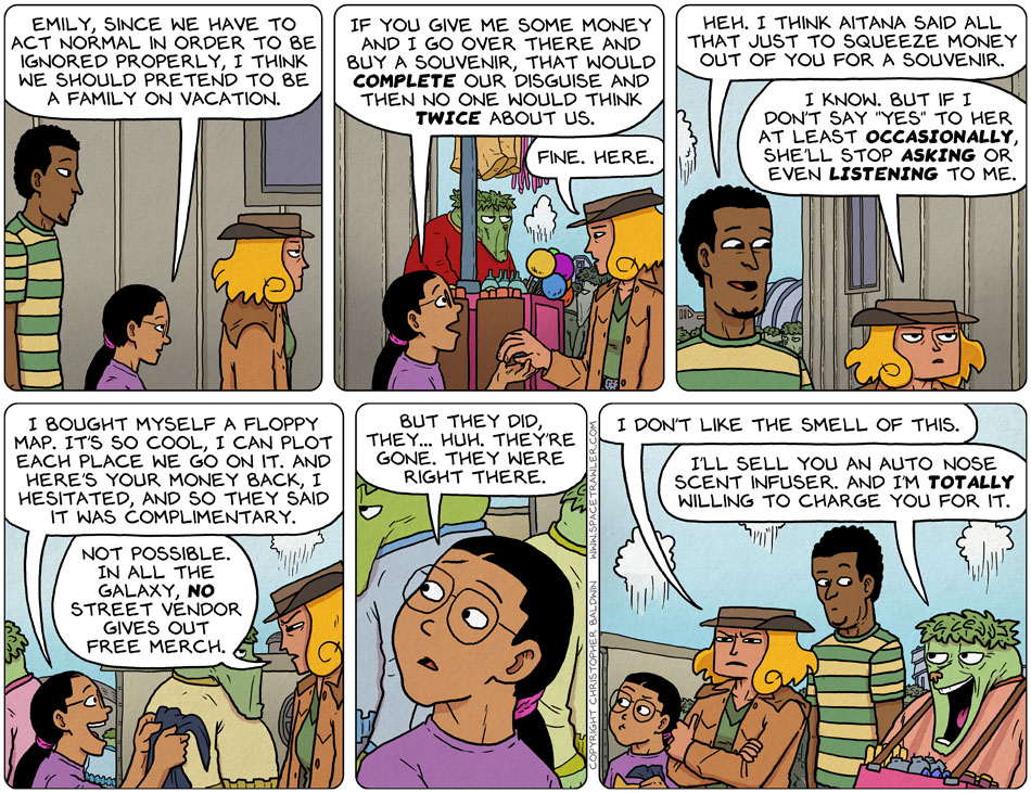 Love it that Emily who kind of was a self-exile from a dark planet when we met her now has the whole galaxy pegged.