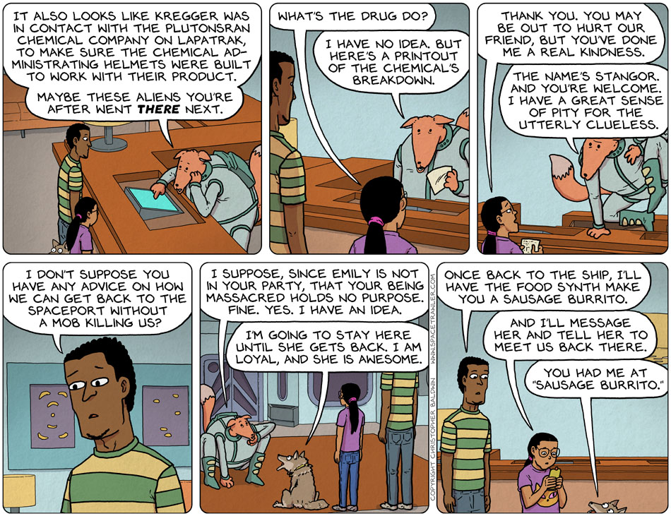 Like: Ruddock is going to be there when Emily returns, with or without Kregger, to find the next step to solving the mystery is back at the ship already. With Stangor.