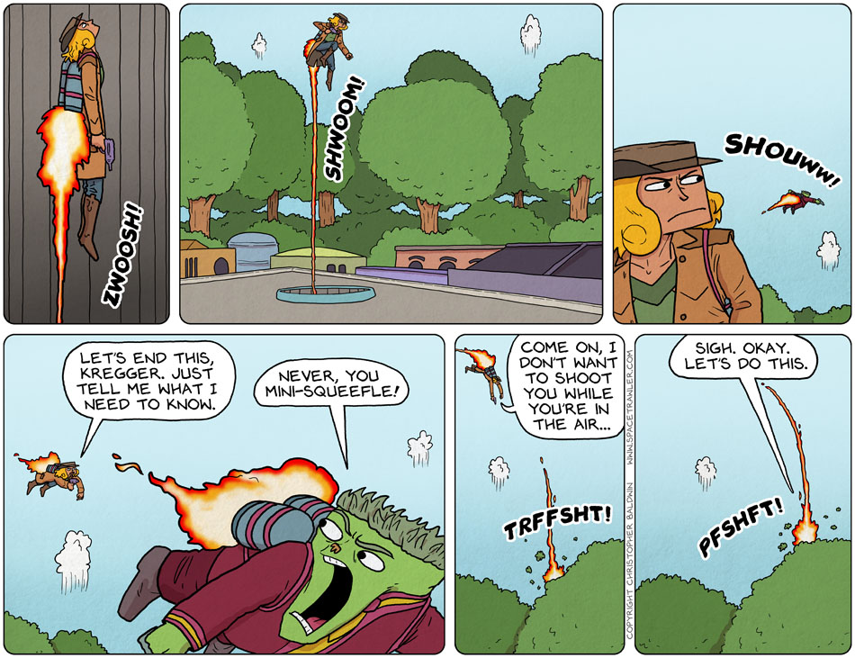 And George Lucas didn’t come up with it first. Well done, Christopher. This oughta be interesting. Blast ‘im, Emily! It’s only a stun setting, thirty meters up.