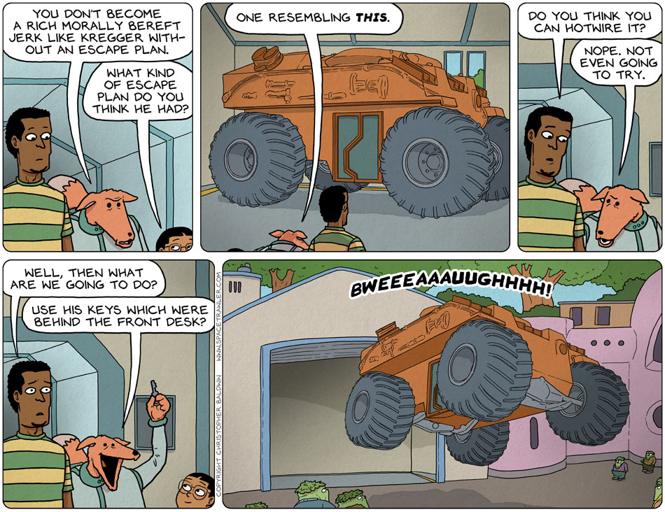 Oh wait. Kregger had two sets of jetpacks to lure a non-Durn to their doom. What kind of trap is built into THIS vehicle, I wonder?